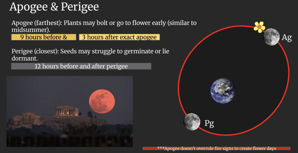 Beyond this core sidereal rhythm, the calendar also indicates additional lunar events such as ascending and descending Moon, apogee and perigee, lunar nodes, and planetary aspects. These moments are considered to intensify, weaken, or disturb plant growth processes.