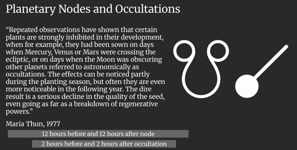 “The synodic month does not have much effect on plant growth, and we take no account of it in this calendar; the phases are merely shown for those people who want to have a complete picture of the moon’s rhythms” – The Maria Thun Biodynamic Calendar