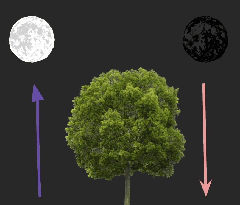 ↗ Ascending Moon — Over roughly two weeks, the Moon rises higher in the sky each day, associated with forces working above the soil.