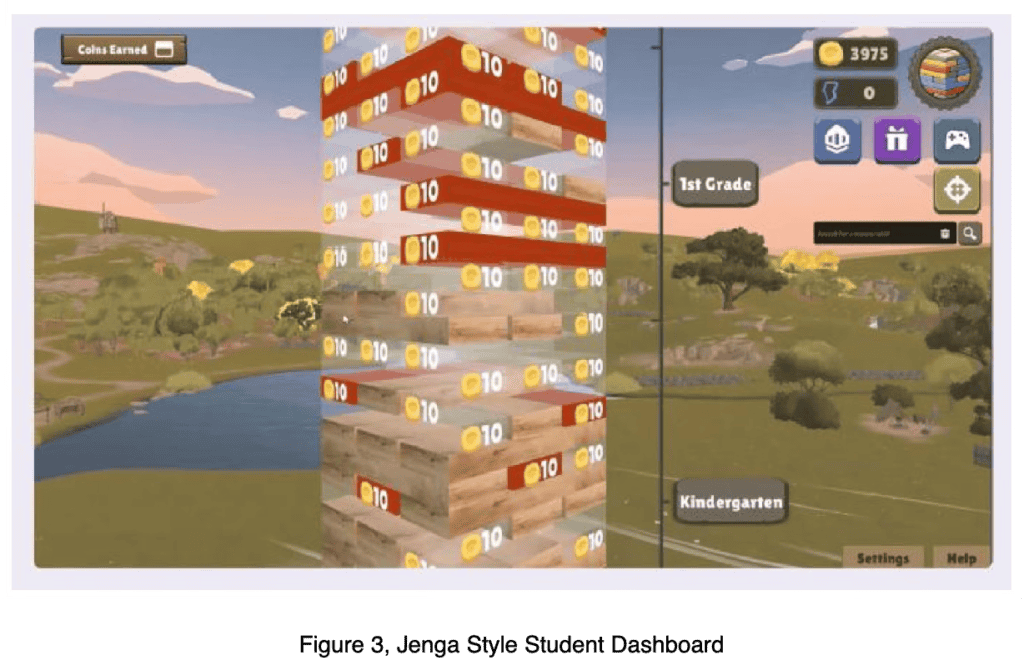 The 2HL white paper explicitly promotes the use of gamification and intensive metrics to create an education that “empowers students to crush academics” (p. 2) and promises parents “unparalleled insight into what their child knows or doesn’t know” (p. 26). A student dashboard displays a Jenga-style tower indicating how many lessons remain before a learner can progress to the next grade. Students also collect coins, shown in the top right-hand corner. Although not explicitly named in the white paper, these coins function as the school’s internal currency, known as Alpha Bucks (Feathers, 2025), which are used to extrinsically incentivise students to learn.
